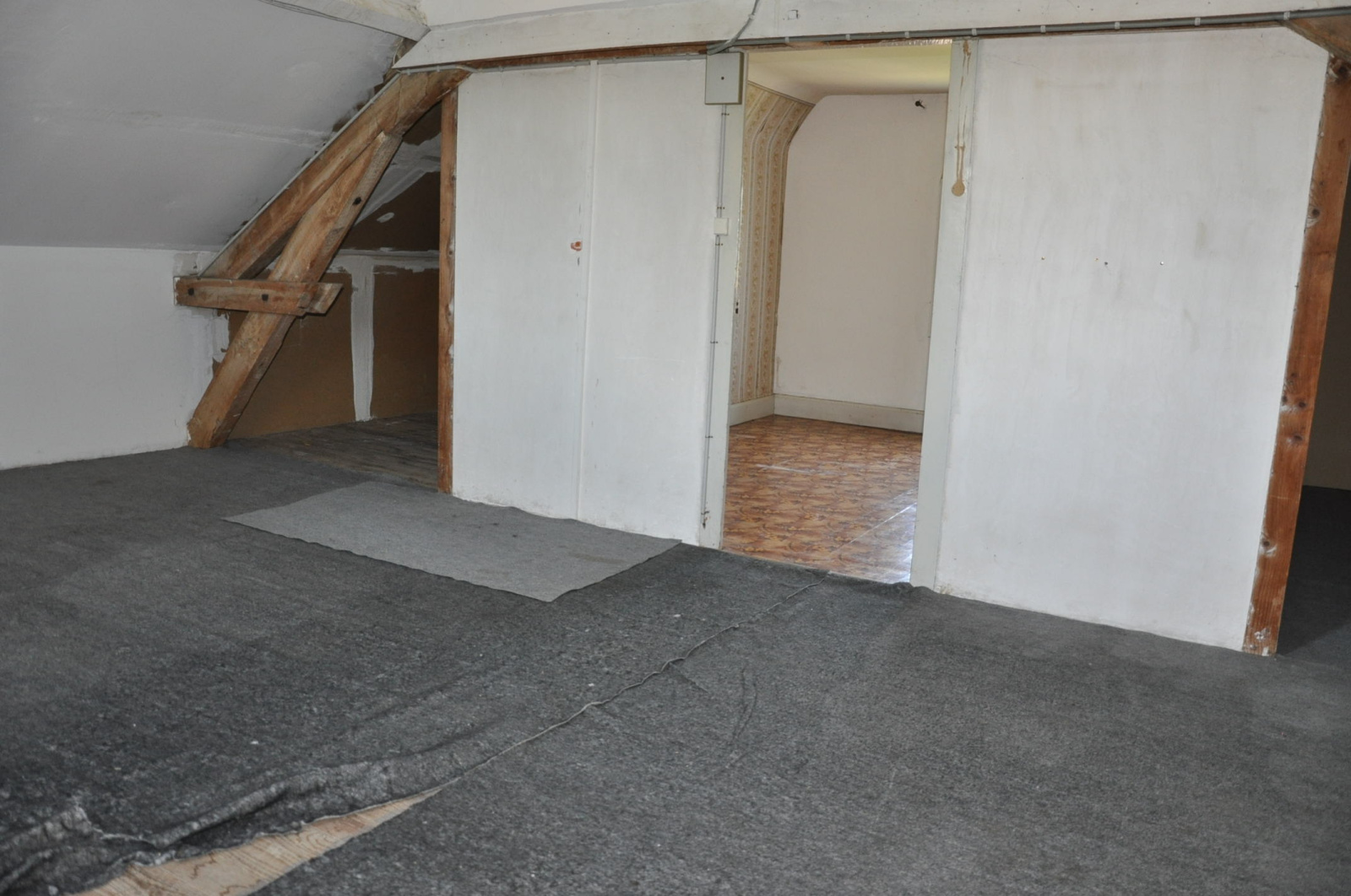 à LAPALISSE, belle maison des années 30 élévée sur cave, dans un quartier résidentiel calme, composée au rez-de-chaussée d'une grande pièce à vivre de 32 m², sur carrelage, avec un coin cuisine aménagée et équipée (four+hotte+plaque gaz) et un poêle à bois, une chambre de 10 m², et une salle d’eau avec WC, et à l’étage, un espace sur parquet en sapin, de 40 m² au-dessus de 1,80 m, à aménager, présence de deux fenêtres en PVC avec double vitrage.