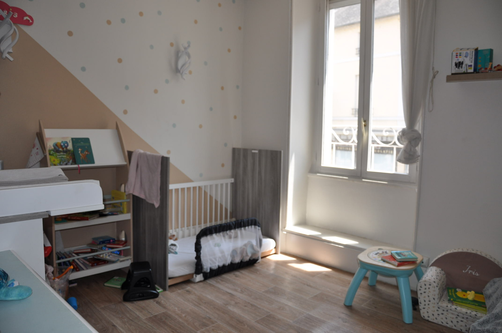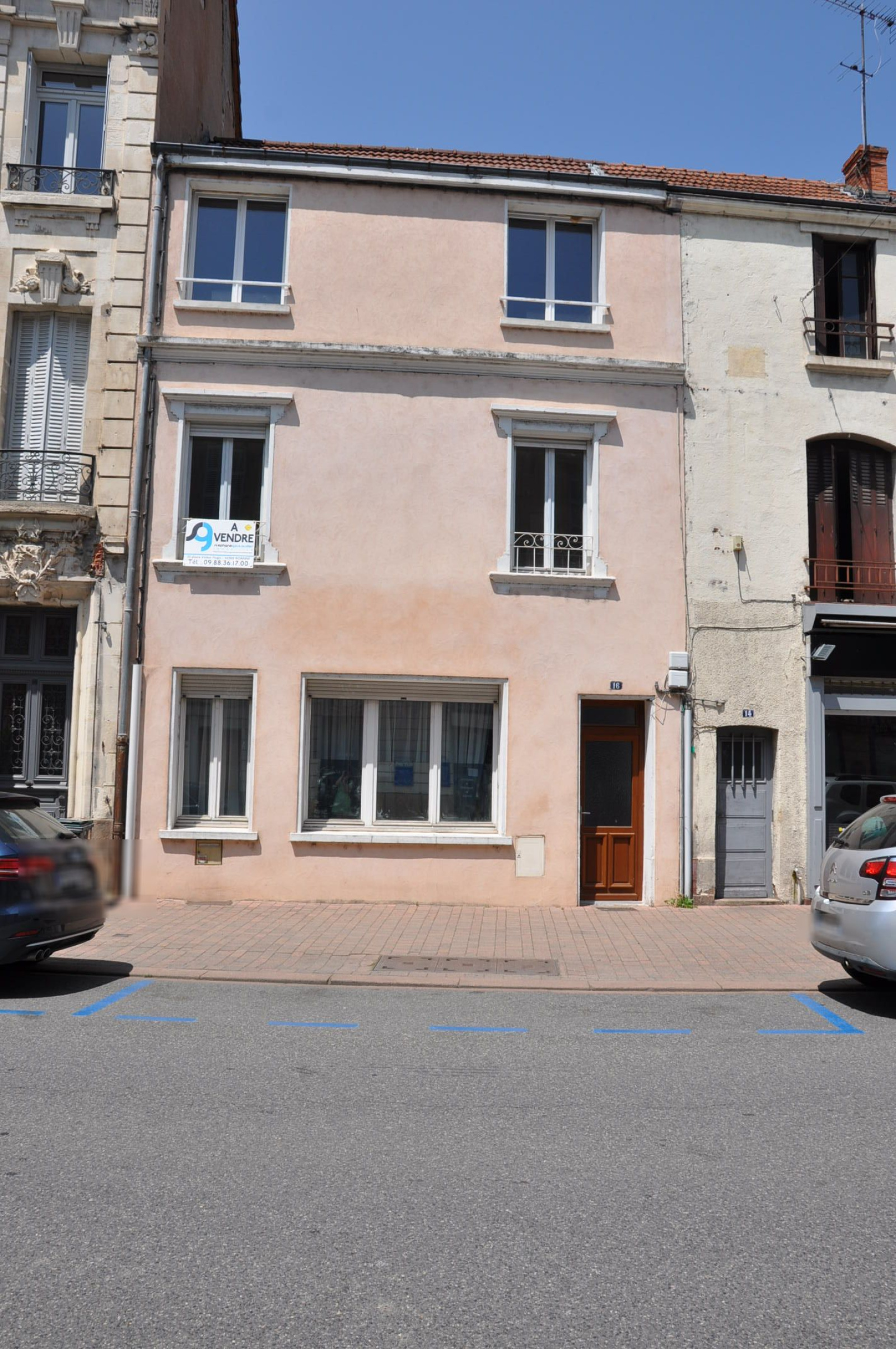 LAPALISSE, Maison de caractère en centre-ville, élevée sur cave, comprenant au rez-de-chaussée, une entrée avec petite verrière donnant sur un salon-salle à manger traversant et lumineux de 33 m², sur parquet véritable et carrelage neuf, une cuisine aménagée et équipée de 9 m² avec une porte vitrée coulissante donnant sur une cour intérieure de 25 m², avec terrasse, un espace vestiaire et un WC, au 1er étage, un palier desservant une chambre de 10 m², une chambre de 12 m², une chambre de 9,50 m², une salle d’eau, et un WC, et au dernier étage, un espace ouvert de 50 m², sur dalles « Novopan », à aménager totalement (fenêtres neuves).