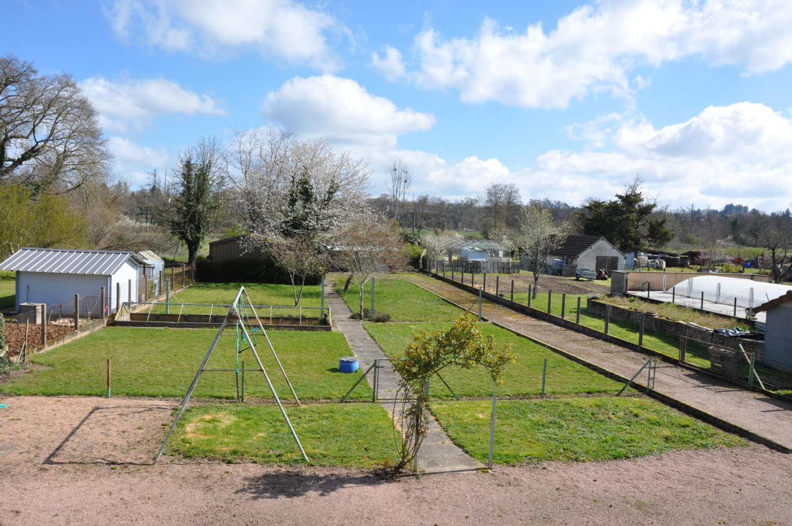 Jardin plat, clos et arboré, le tout sur une parcelle de 1943 m². Un puits. Cabanons de jardin.