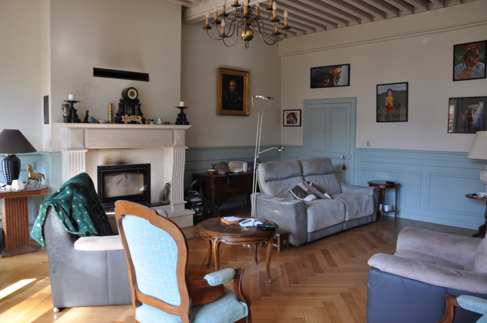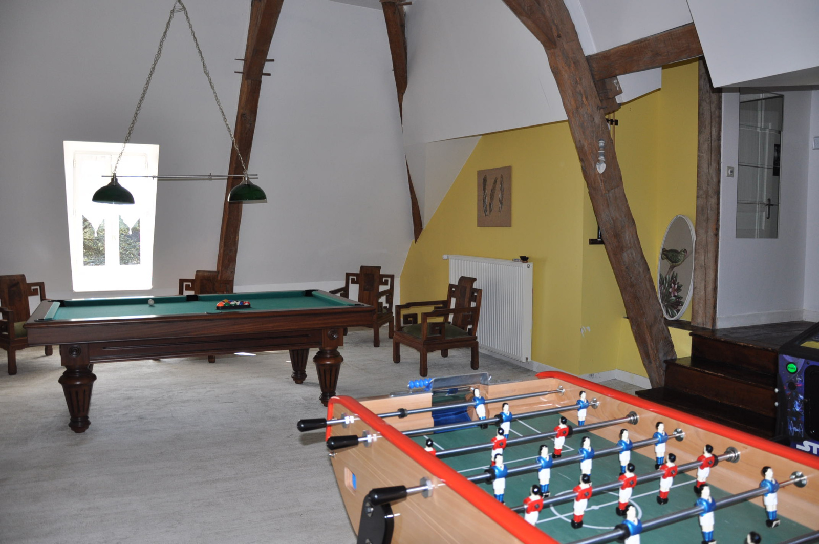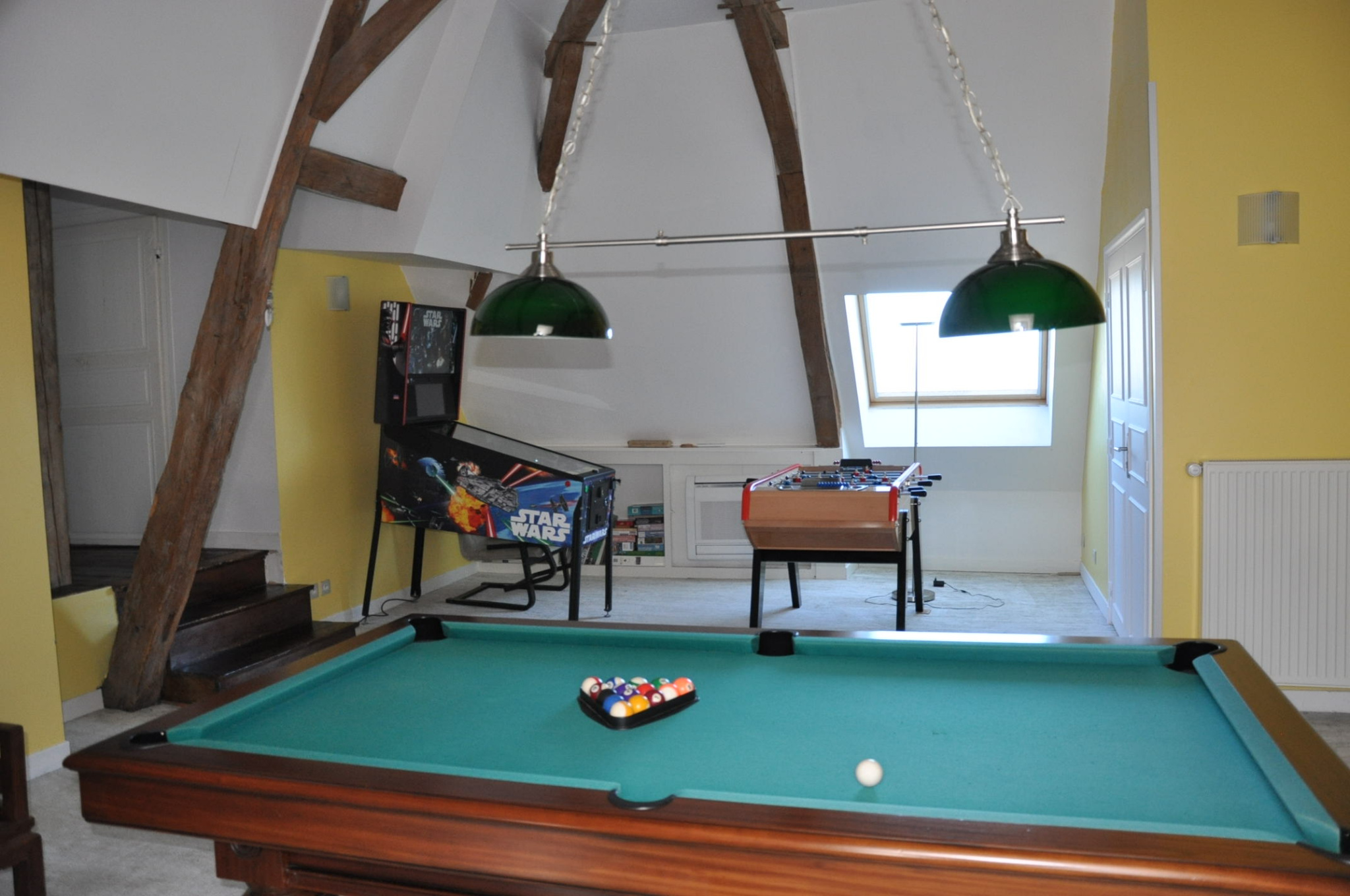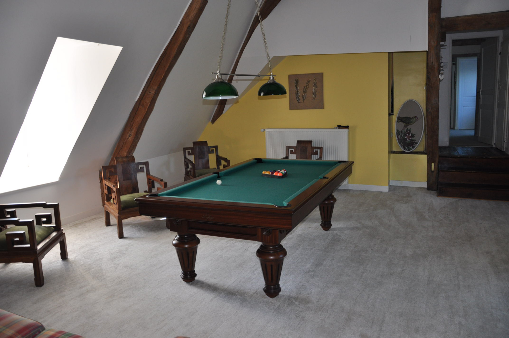 La partie "hôtes", en très bon état, comprend au rez-de-chaussée une entrée sur carreaux de ciment, un salon chaleureux de 30 m², avec une cheminée-insert, une salle à manger de 30 m², avec le plafond mouluré et "à la française", et un WC, au premier étage un palier, deux chambres avec leur salle d'eau, un couloir et de nouveau deux chambres avec leur salle d'eau, au second étage un palier, une superbe salle de jeux (38 m²), avec haut plafond et poutres apparentes, deux chambres avec leur petit salon et leur salle d'eau individuelle, bien sûr.