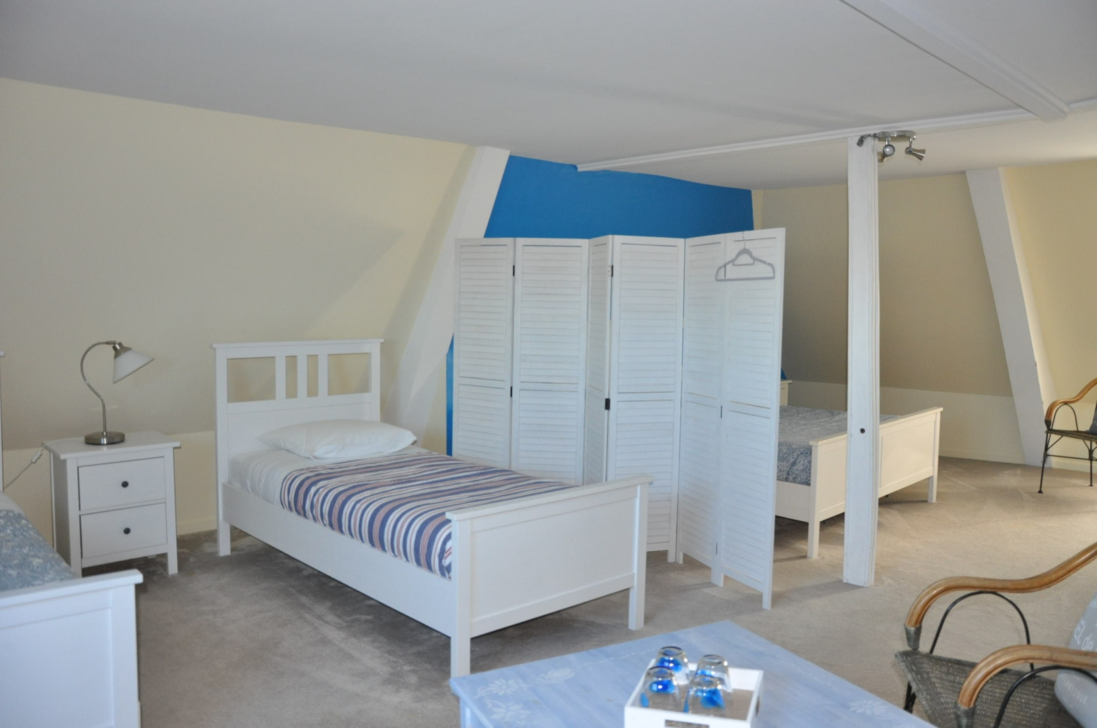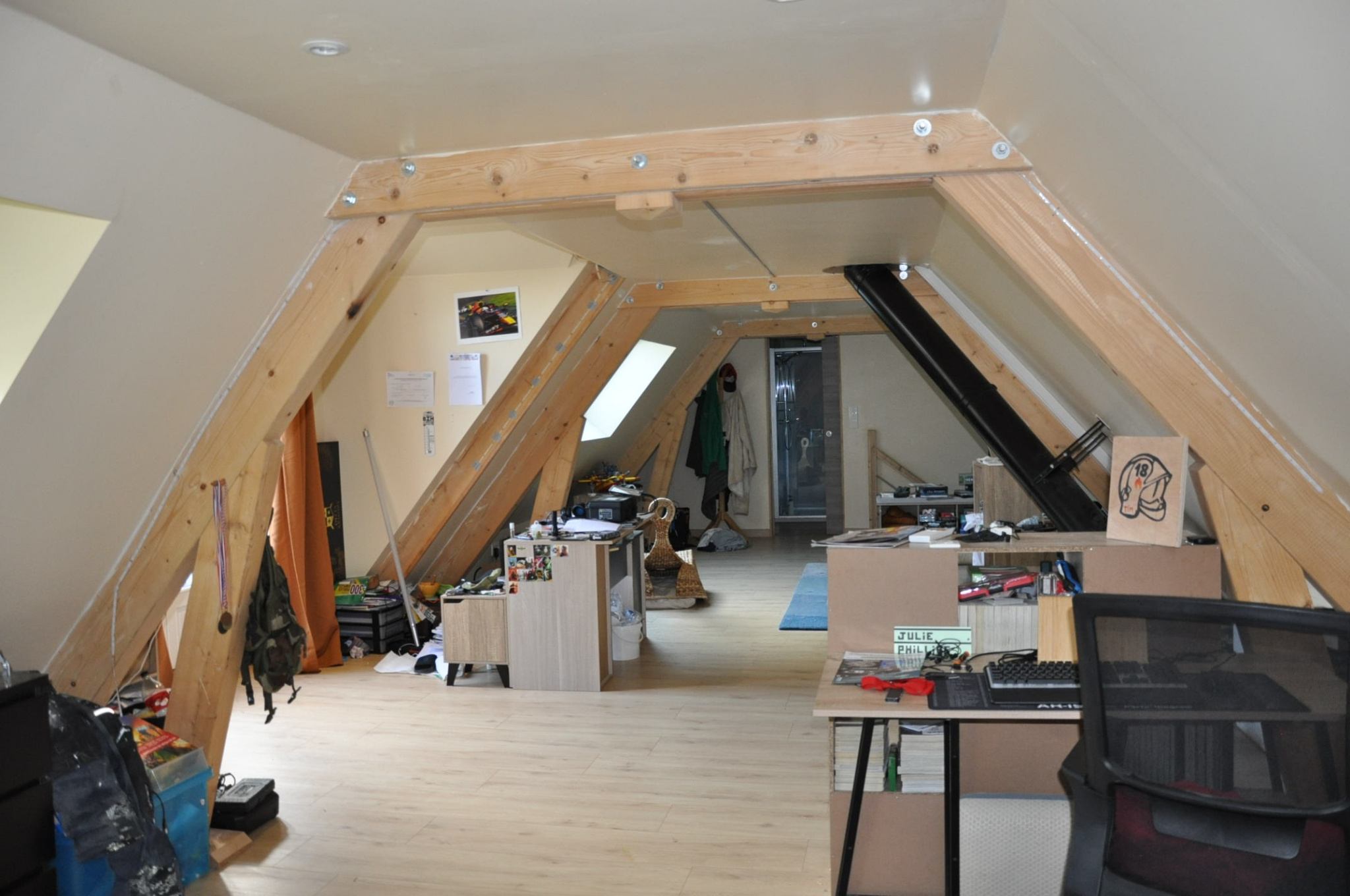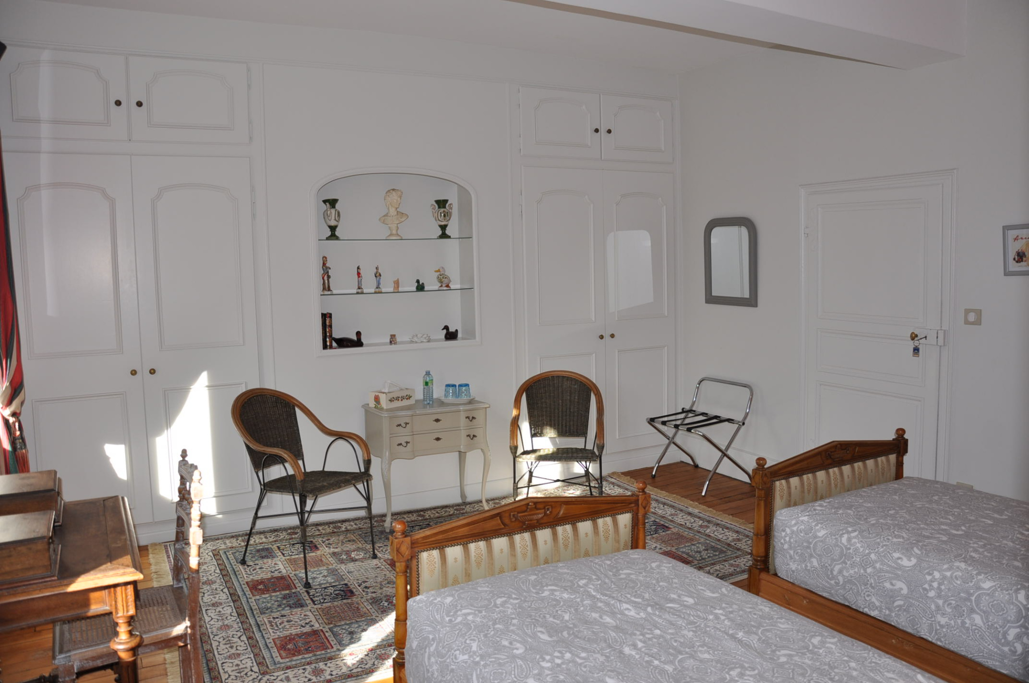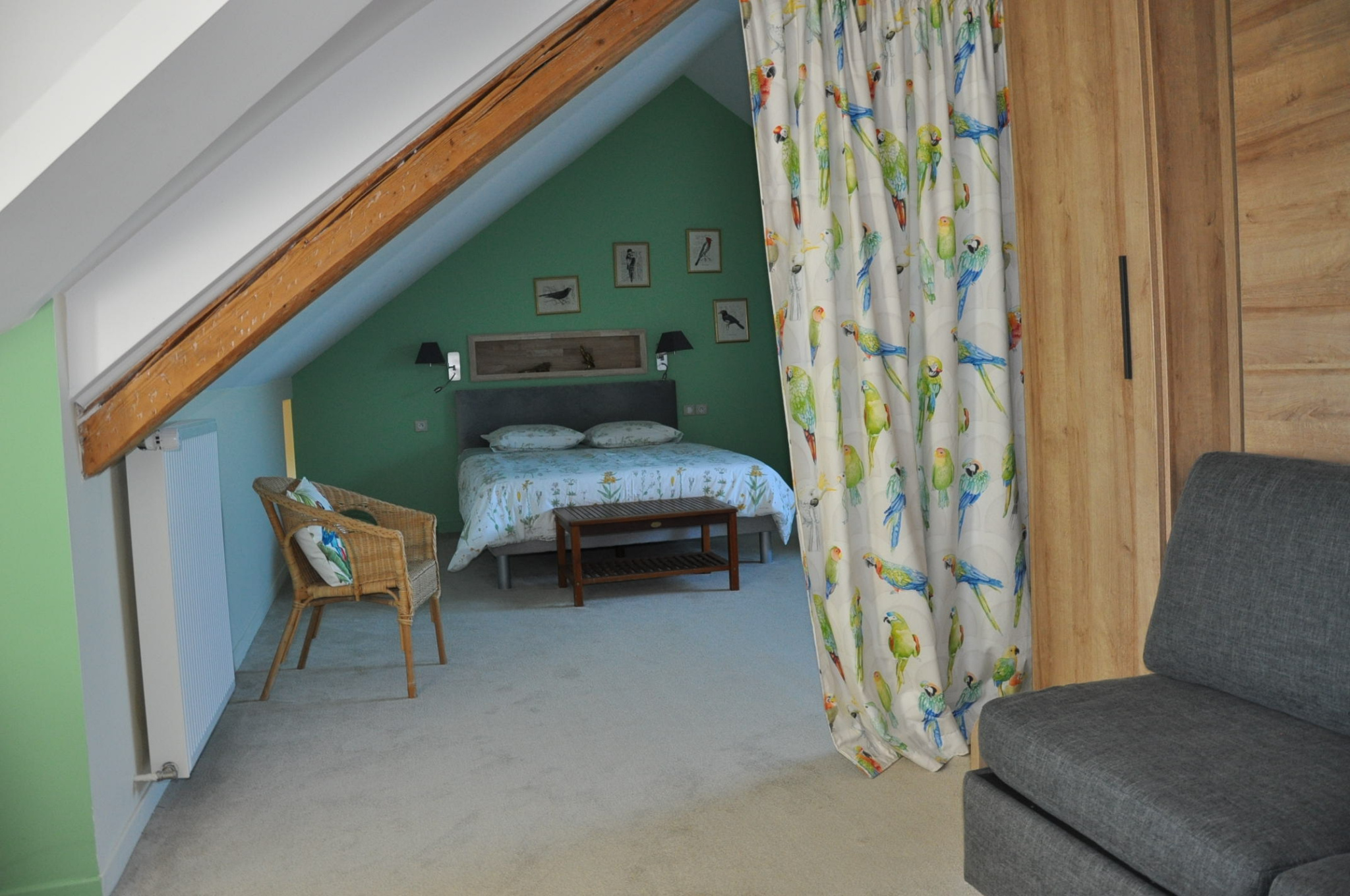 La partie "hôtes", en très bon état, comprend au rez-de-chaussée une entrée sur carreaux de ciment, un salon chaleureux de 30 m², avec une cheminée-insert, une salle à manger de 30 m², avec le plafond mouluré et "à la française", et un WC, au premier étage un palier, deux chambres avec leur salle d'eau, un couloir et de nouveau deux chambres avec leur salle d'eau, au second étage un palier, une superbe salle de jeux (38 m²), avec haut plafond et poutres apparentes, deux chambres avec leur petit salon et leur salle d'eau individuelle, bien sûr.