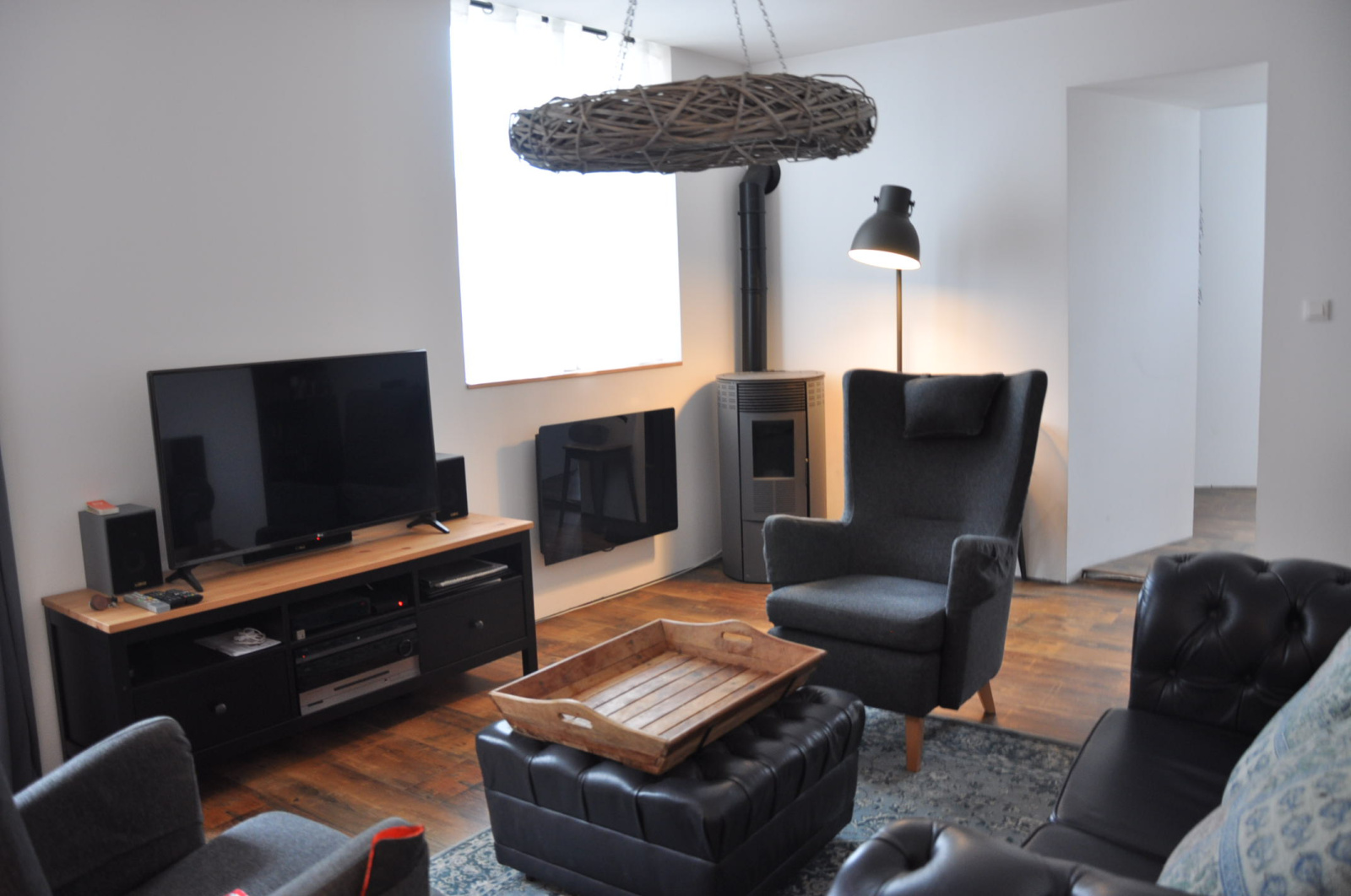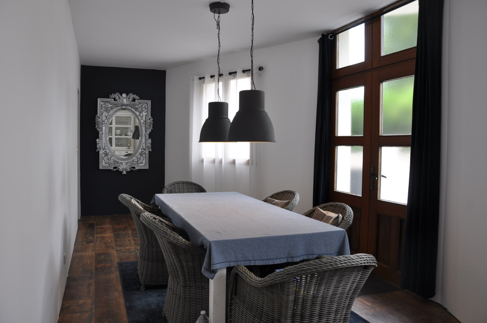 - Une maison d’habitation de plain-pied, entièrement rénovée, agencée avec goût et matériaux de qualité, comprenant une cuisine aménagée et équipée, de 12 m², un salon de 24 m², avec poêle à pellets, une salle à manger de 20 m², deux chambres avec une salle d’eau traversante.