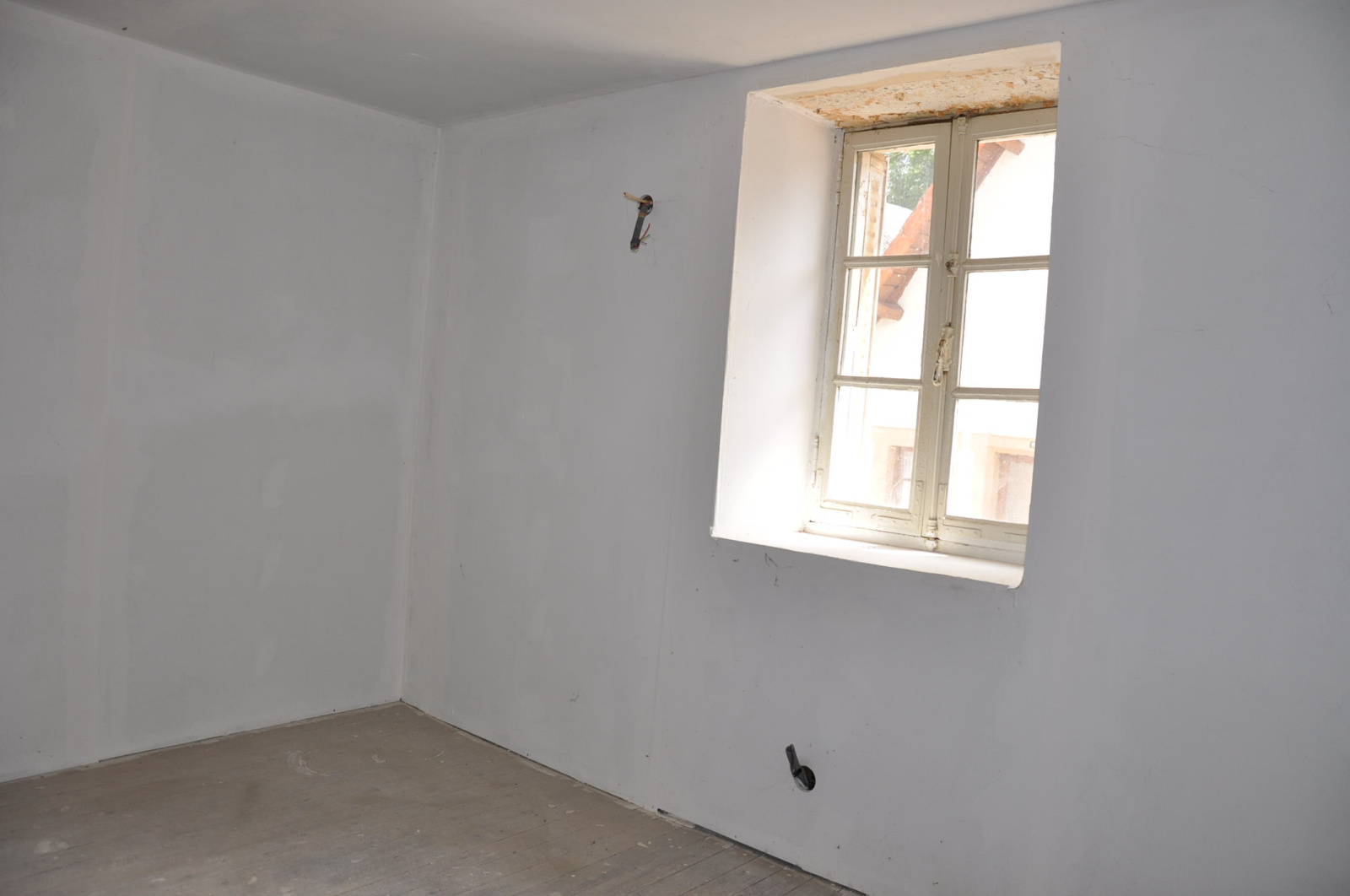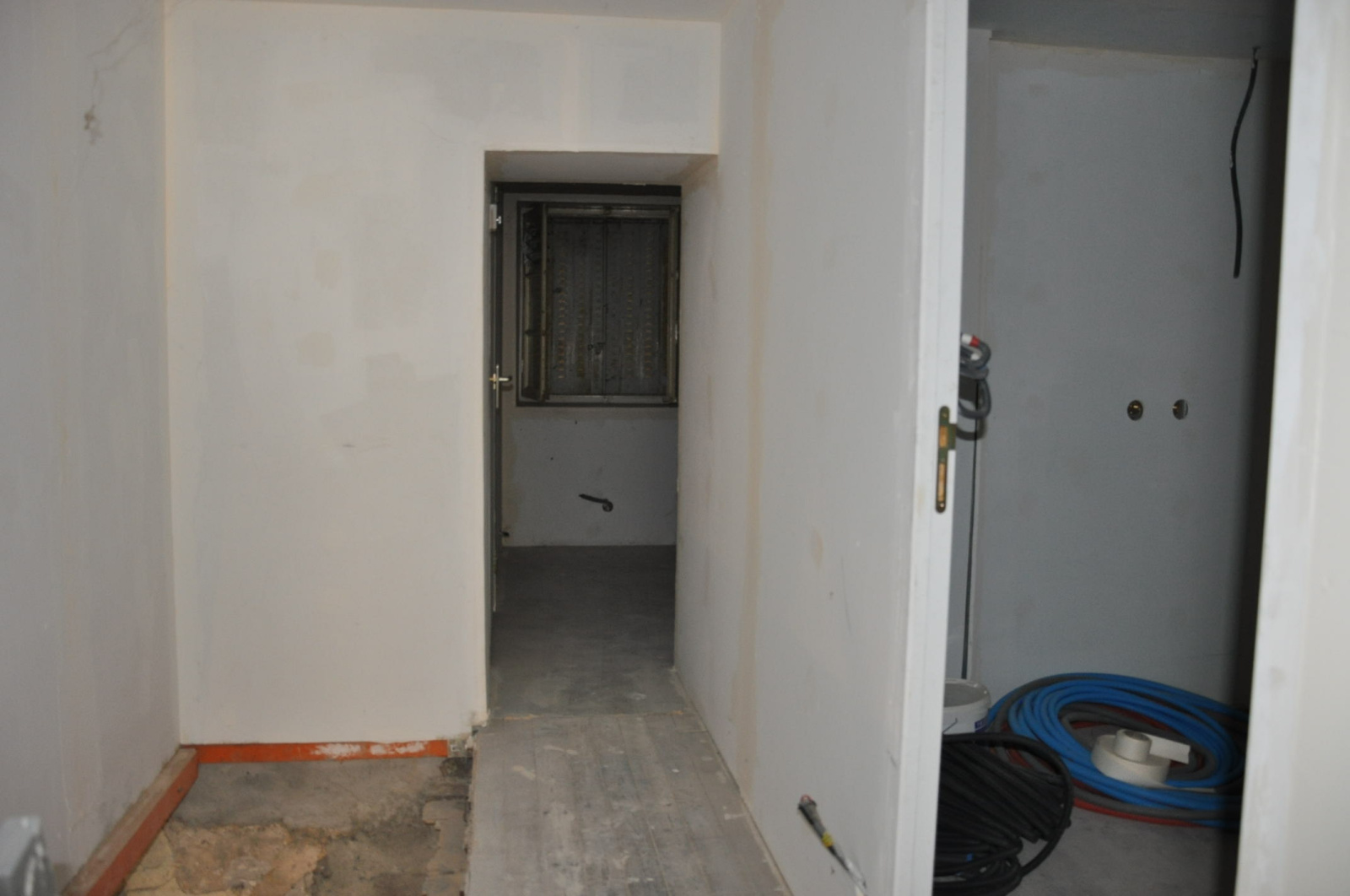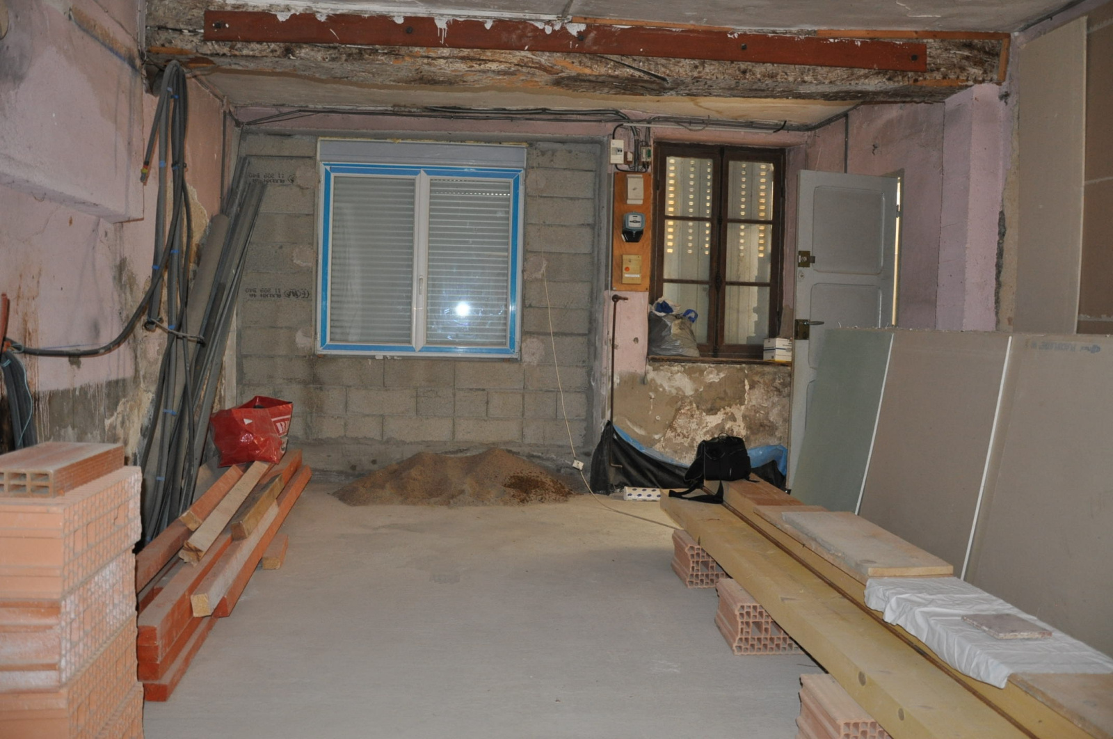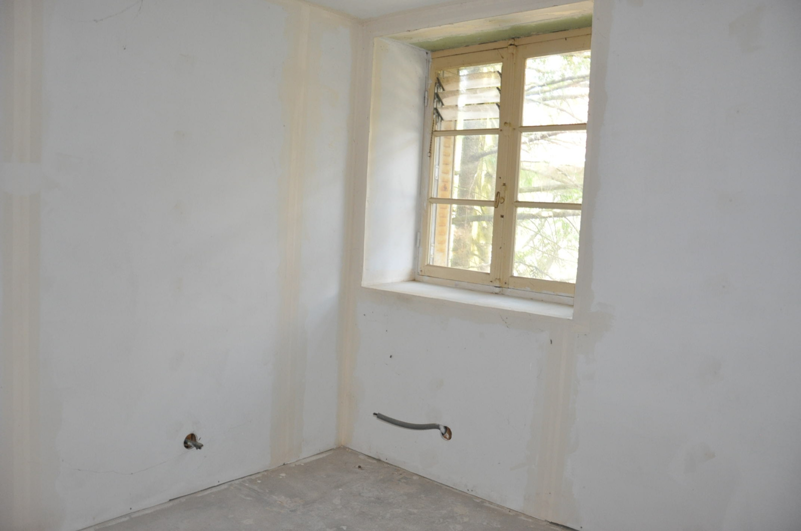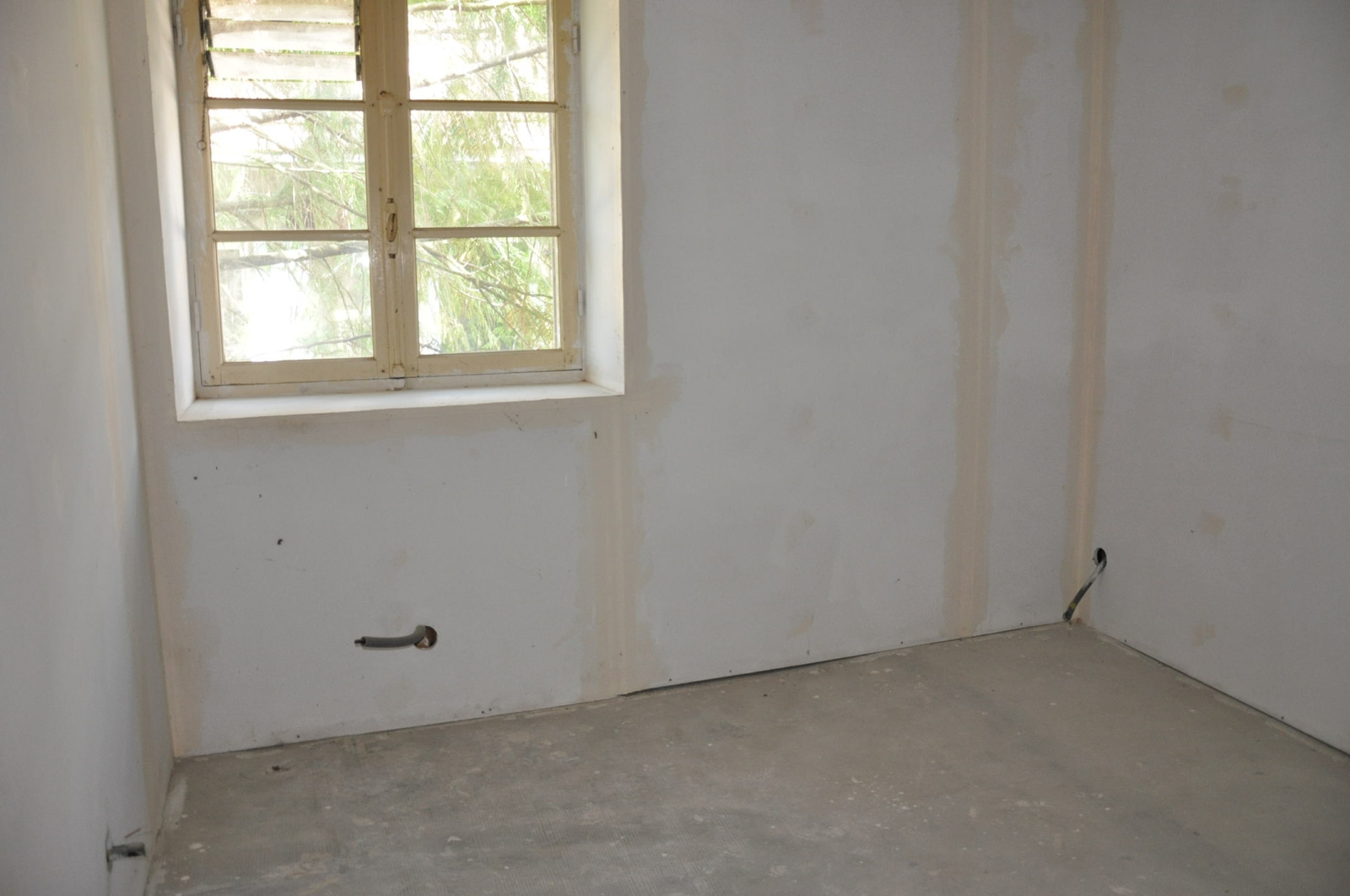 Petite courette à l’arrière. Les travaux ont été partiellement commencés mais non terminés (isolation, électricité, plomberie...). Pas de systéme de chauffage.