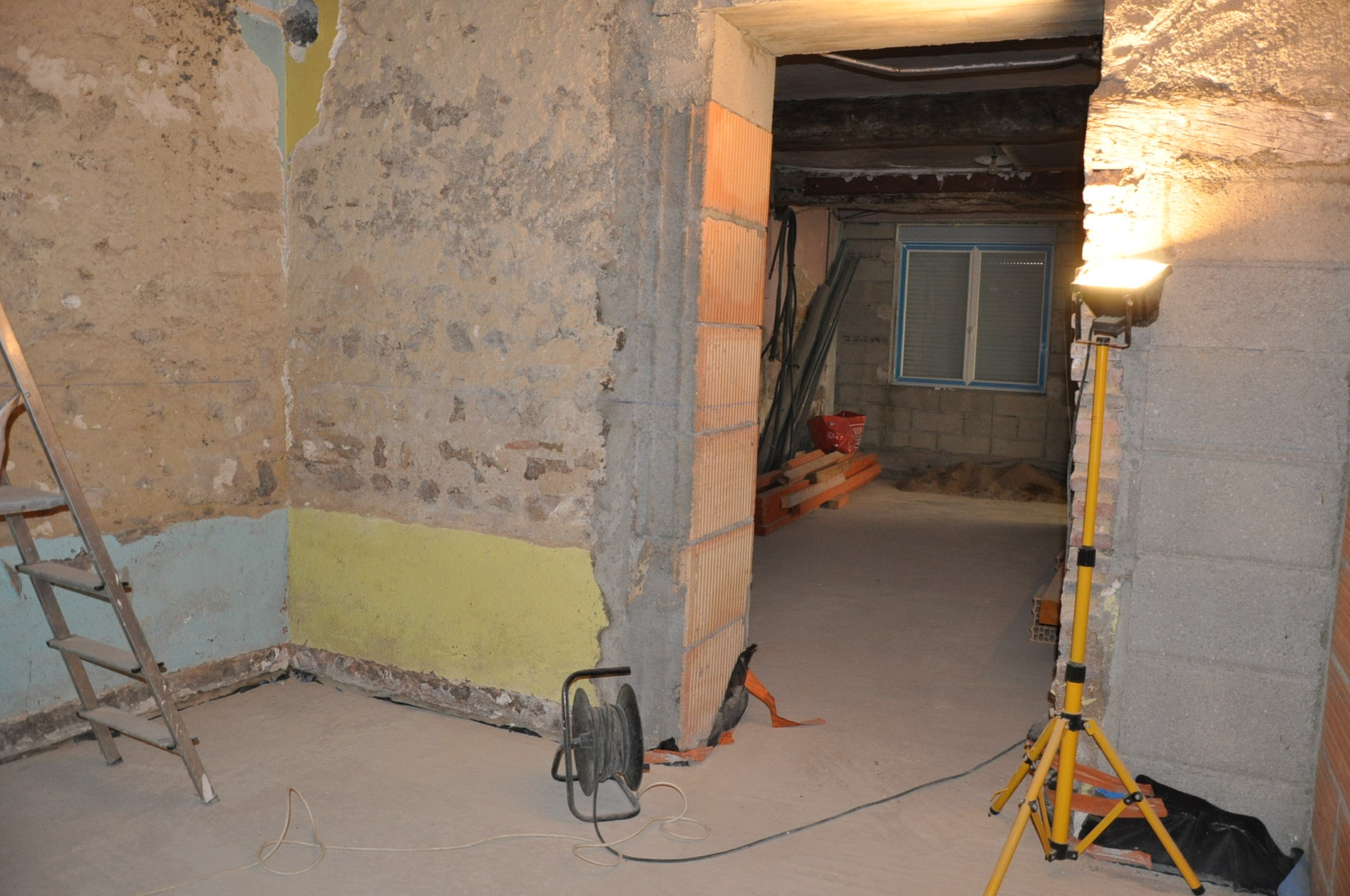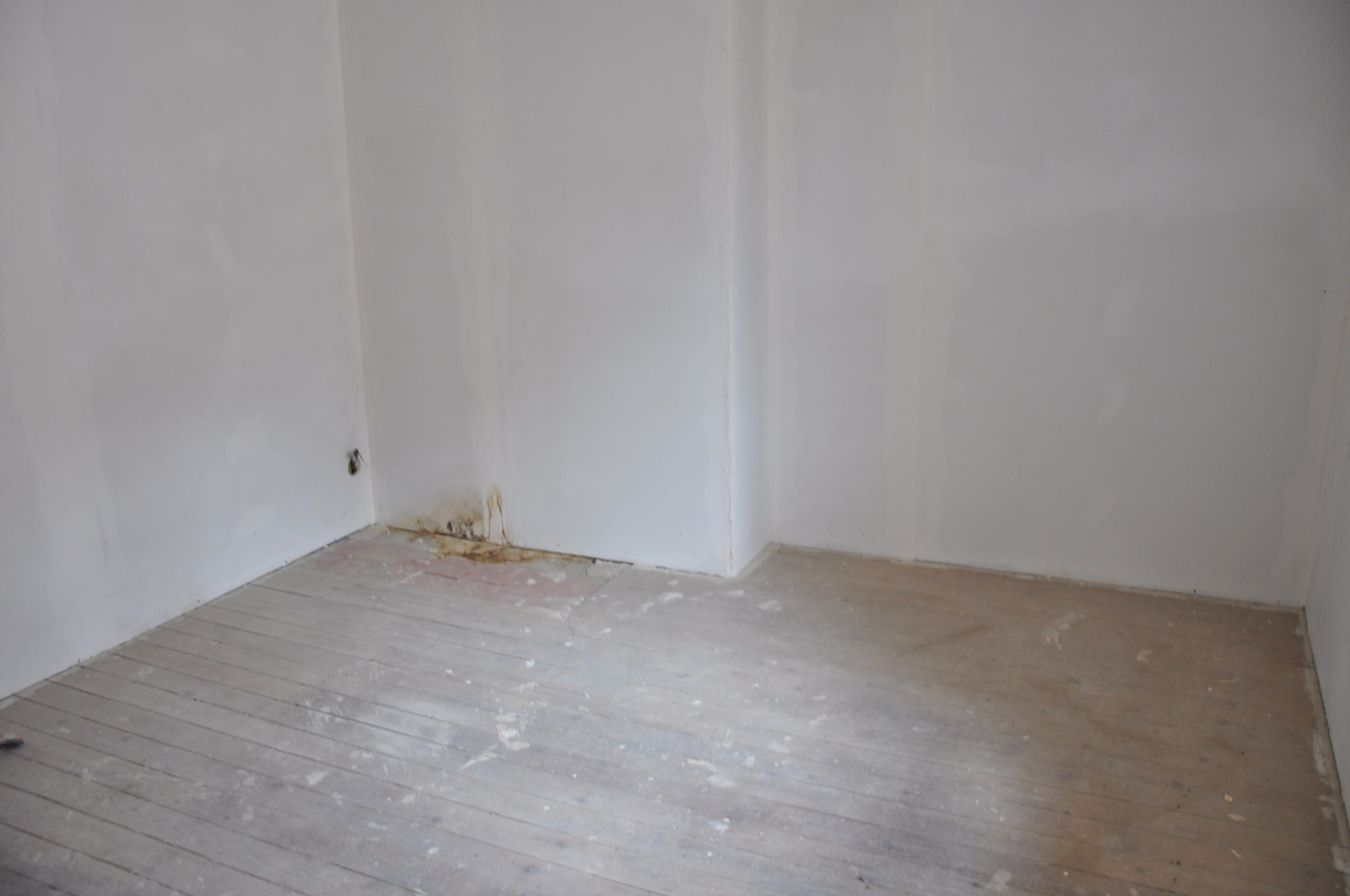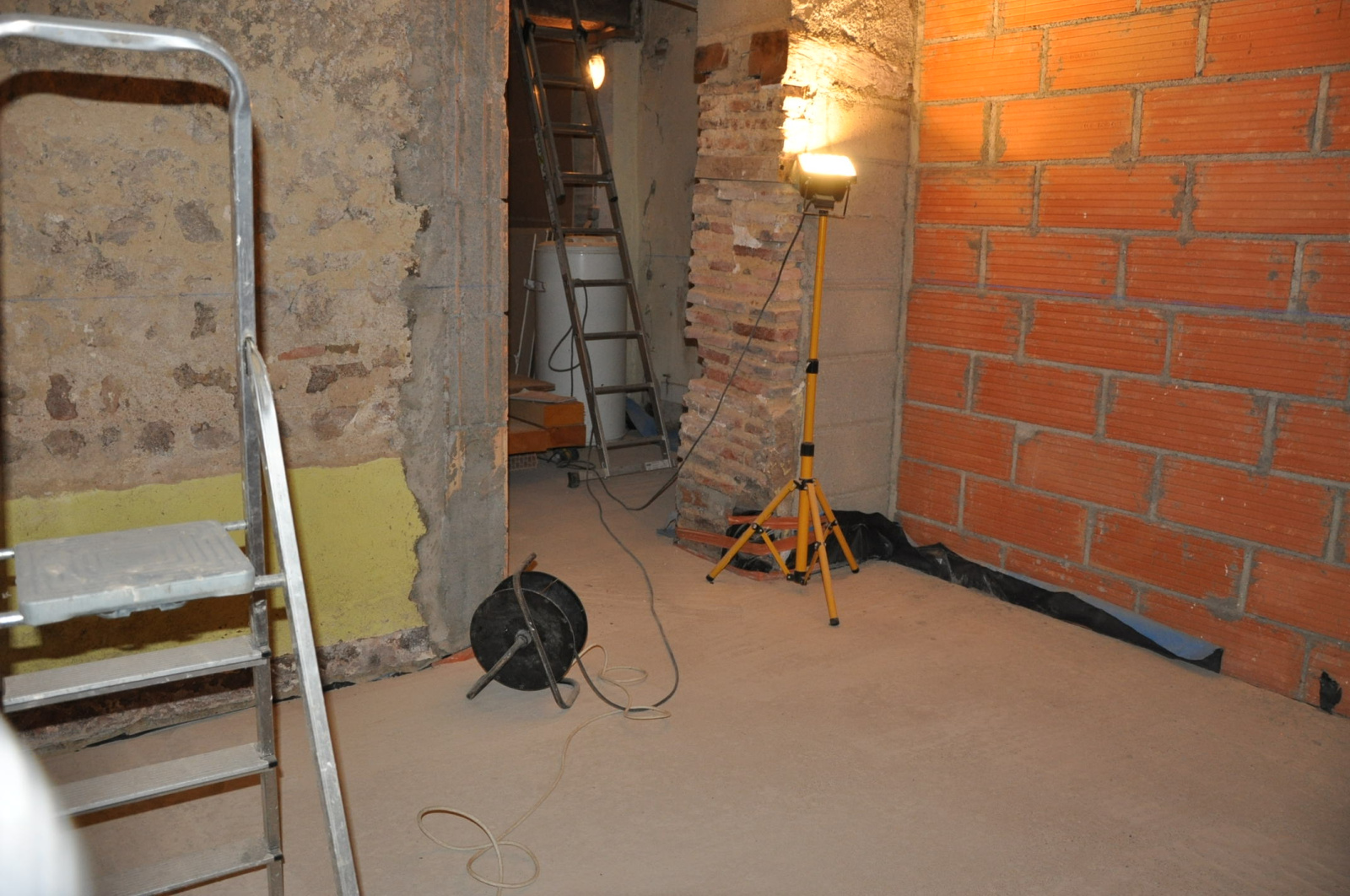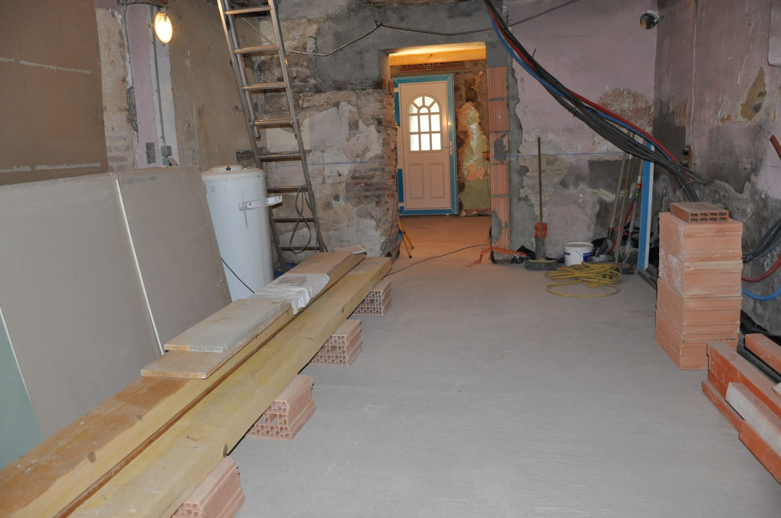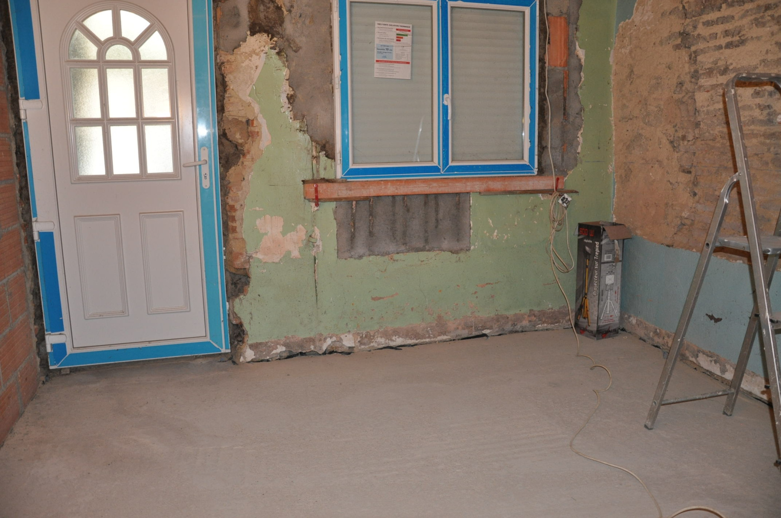 Petite courette à l’arrière. Les travaux ont été partiellement commencés mais non terminés (isolation, électricité, plomberie...). Pas de systéme de chauffage.