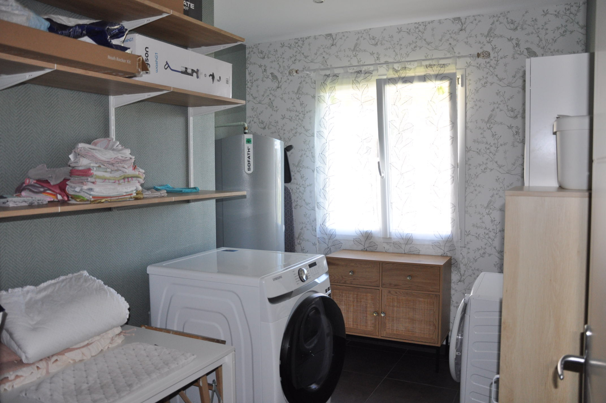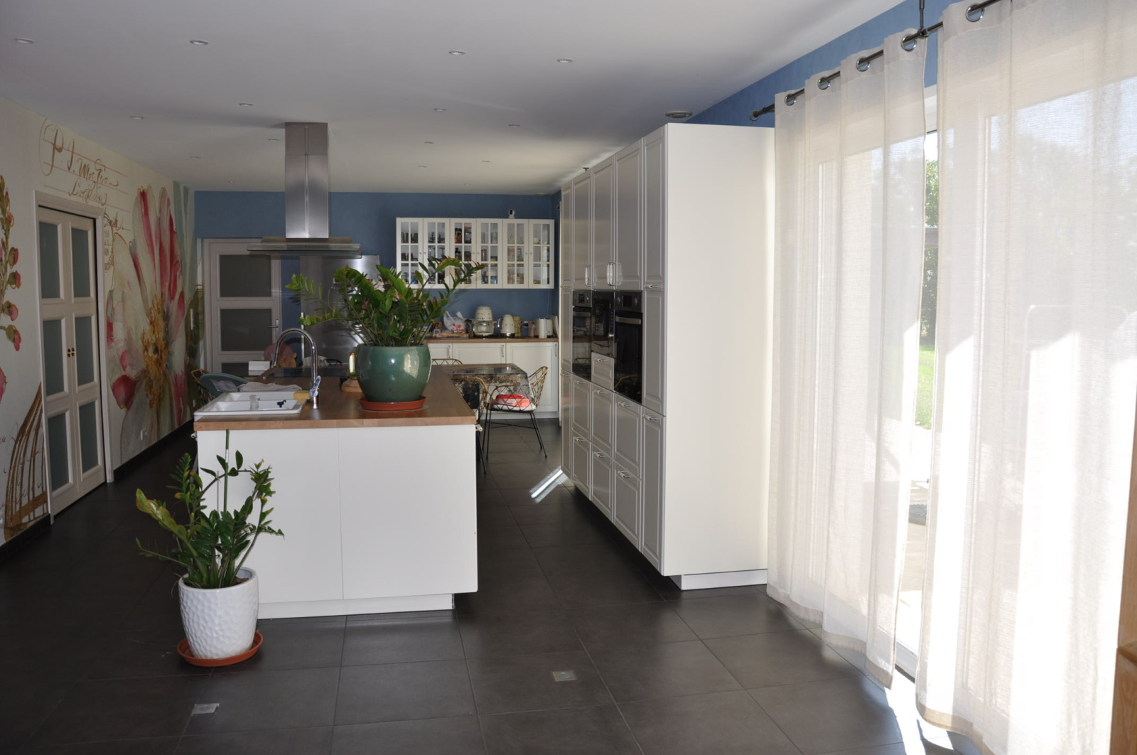 L'intérieur de la maison comprend une grande entrée avec placards, une belle pièce à vivre traversante de 66 m², avec une très belle cuisine aménagée et équipée, 5 chambres, un bureau, une salle de bain, une salle d'eau (binetôt terminée), deux WC, un cellier et une buanderie.